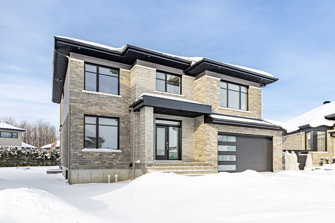 Ce superbe modèle propose une architecture contemporaine aux lignes épurées, rehaussée par des matériaux haut de gamme et une façade imposante qui inspire confiance dès le premier regard. À l’intérieur, ses vastes espaces lumineux offrent un confort exceptionnel : aires ouvertes conviviales, cuisine spacieuse, grandes fenêtres et finitions soignées. Avec son étage généreux, ses chambres bien proportionnées et son garage intégré au style impeccable, cette maison représente le parfait équilibre entre design, fonctionnalité et qualité. Une demeure moderne conçue pour ceux qui recherchent espace, style et prestige.
